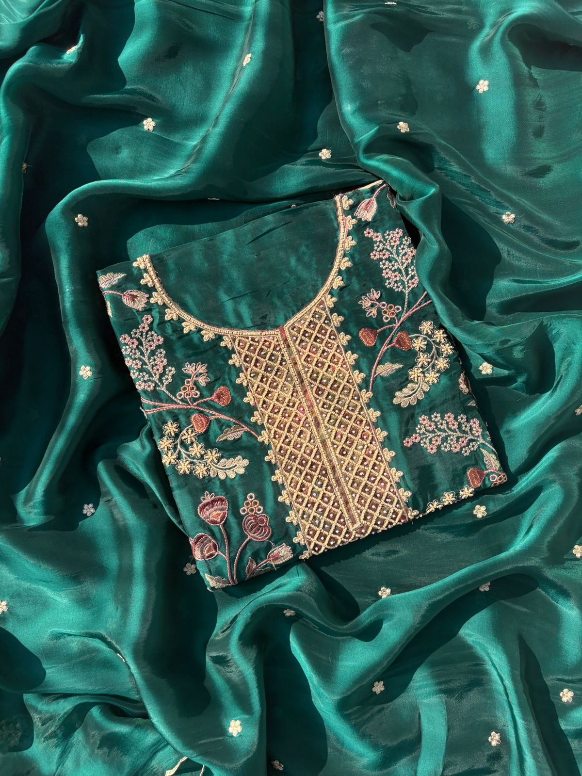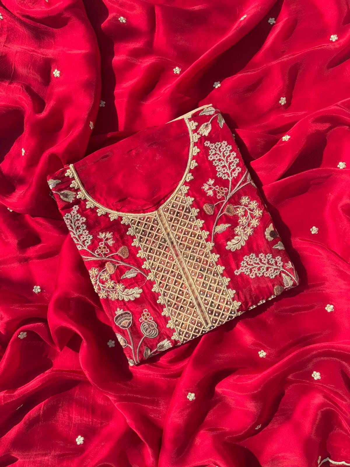 Dupatta: Embroidered tissue, light and elegant
